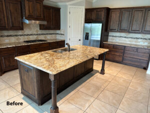 Our clients wanted to refresh their kitchen but preferred to keep their existing countertops. Unsure of their options, they consulted with us. After evaluating their space, we recommended cabinet refacing as the ideal solution. They chose shaker-style doors in Nordic White for the cabinets and Flint SuperMatte for the island. To complete the transformation, we also installed a new backsplash. The result is a beautifully updated kitchen that perfectly reflects their style.