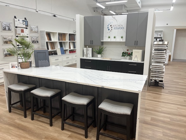 Visitors can explore the brand-new showroom, which showcases a wide selection of kitchen and bath displays, including cabinets, countertops, flooring, fixtures, and accessories. The expanded space gives homeowners the opportunity to see, touch, and experience the latest in kitchen and bath design while meeting the expert design team at Kitchen Solvers of Columbus.