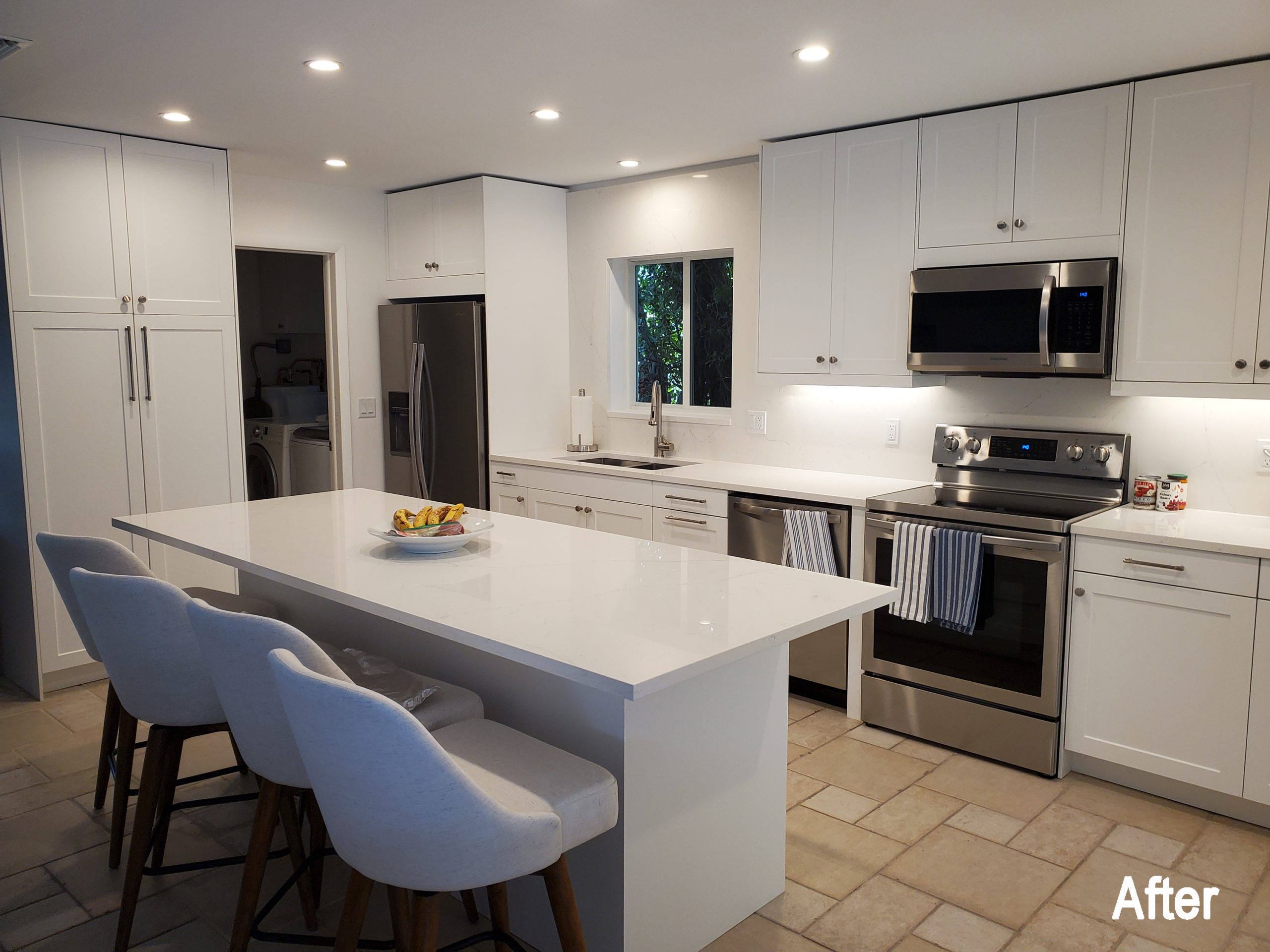 This client lives in Boynton Beach and wanted a remodel that would open up the kitchen and allow for more light and space. The original kitchen was small and very disconnected from the rest of the home. There was a lot of potential, but it was hiding behind a wall. We removed the wall that divided the kitchen from the living room to make it one large living space. We installed all new cabinets in a Matte white color to freshen up the look and make it more modern.