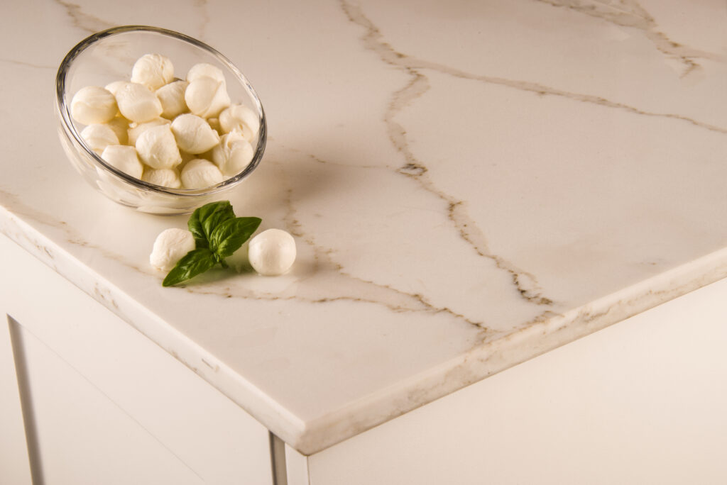 Marble is a smooth surface typically striated with veins of minerals. Some marble countertops are quartz based and others are composed of other minerals like serpentine. You will typically see marble in variations of black and white.