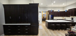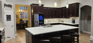 Before construction began, we carefully de-installed the existing LVP flooring and leveled the entire floor. The flooring had previously been installed over multiple layers of older flooring, which left the surface uneven. Once the remodel was complete, we reinstalled the LVP throughout the home — except for the master bedroom, which received new carpet. This approach also allowed us to reuse the flooring in the newly expanded kitchen areas.