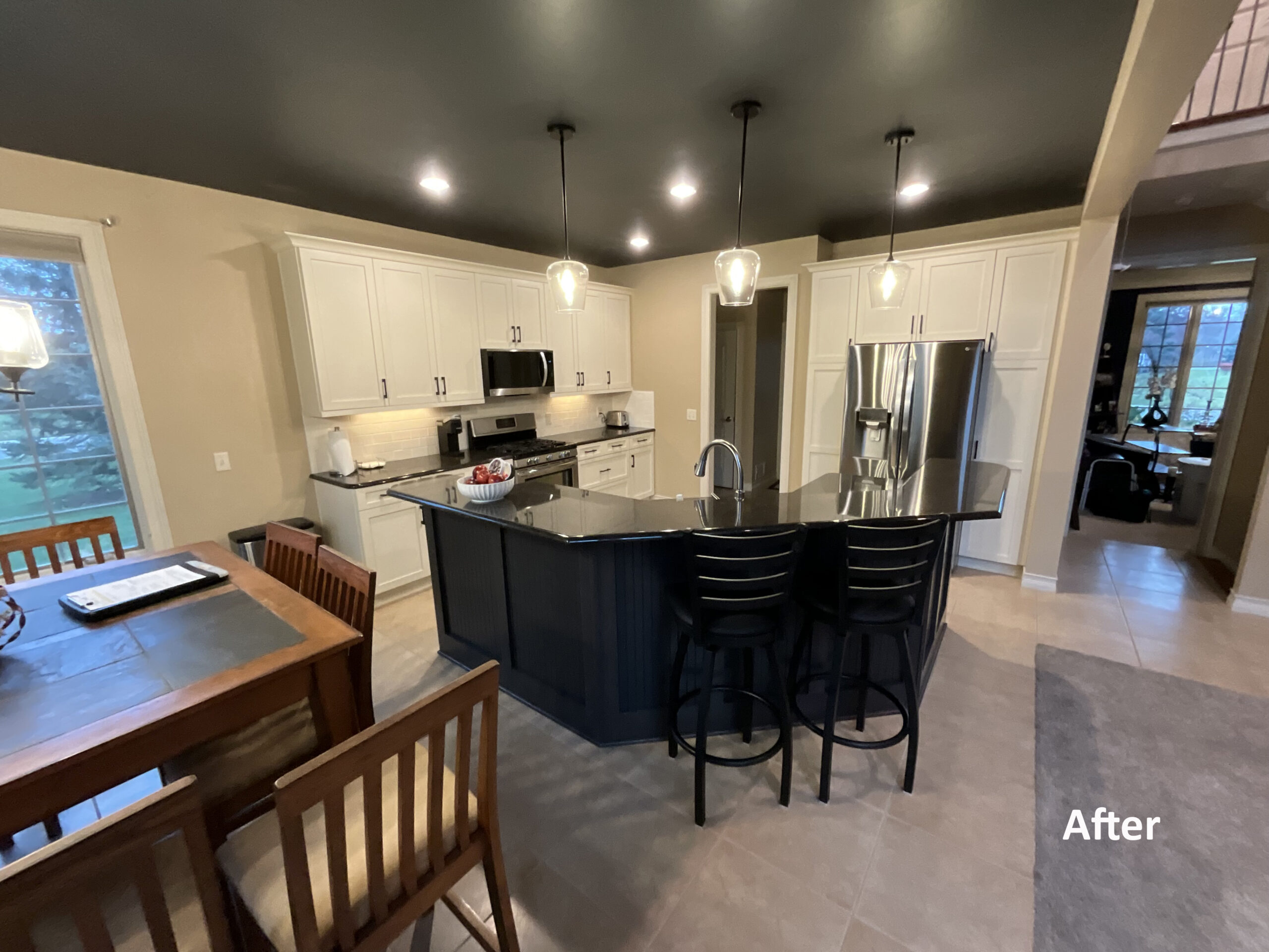 - Color: Eggshell for perimeter and Nightfall stain for island