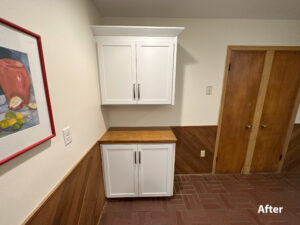 They decided to go with our Stratus shaker door from our Kitchen Solvers Legacy Collection. To finish this transformation, we installed a Panolam Rice Lake laminate countertop and a 3” x 6” Desert Gray Subway tile backsplash. Check out this stunning kitchen transformation!