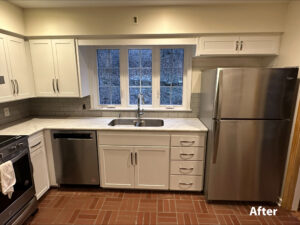 For this kitchen remodeling project, our homeowner was looking to update their old and outdated cabinets. The cabinet boxes were still in good shape, so cabinet refacing was a great solution for them.