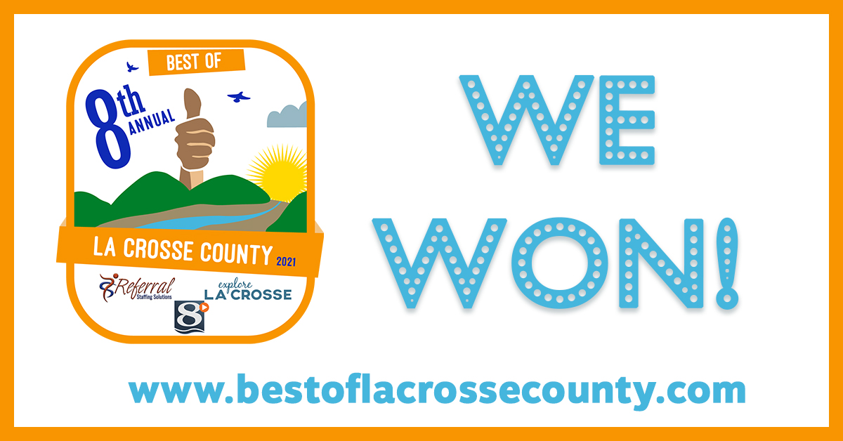 Best of La Crosse County is a contest that asks local residents to vote for their favorite businesses in many different industries. This contest highlights different categories like restaurants, realtors, salons, gyms, places to shop, and different services. There are hundreds of categories and companies that get into the contest are nominated by La Crosse County residents. After a month long nomination period, the top 5 in each category are highlighted and residents of La Crosse county have a month to vote for the top business in each category.