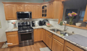 This kitchen transformation is a perfect example of how cabinet refacing can deliver a fresh, updated look without the need for a full remodel. The homeowners loved their existing layout and wanted to keep their current countertops, making refacing the ideal solution.