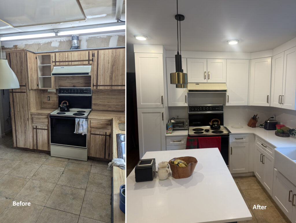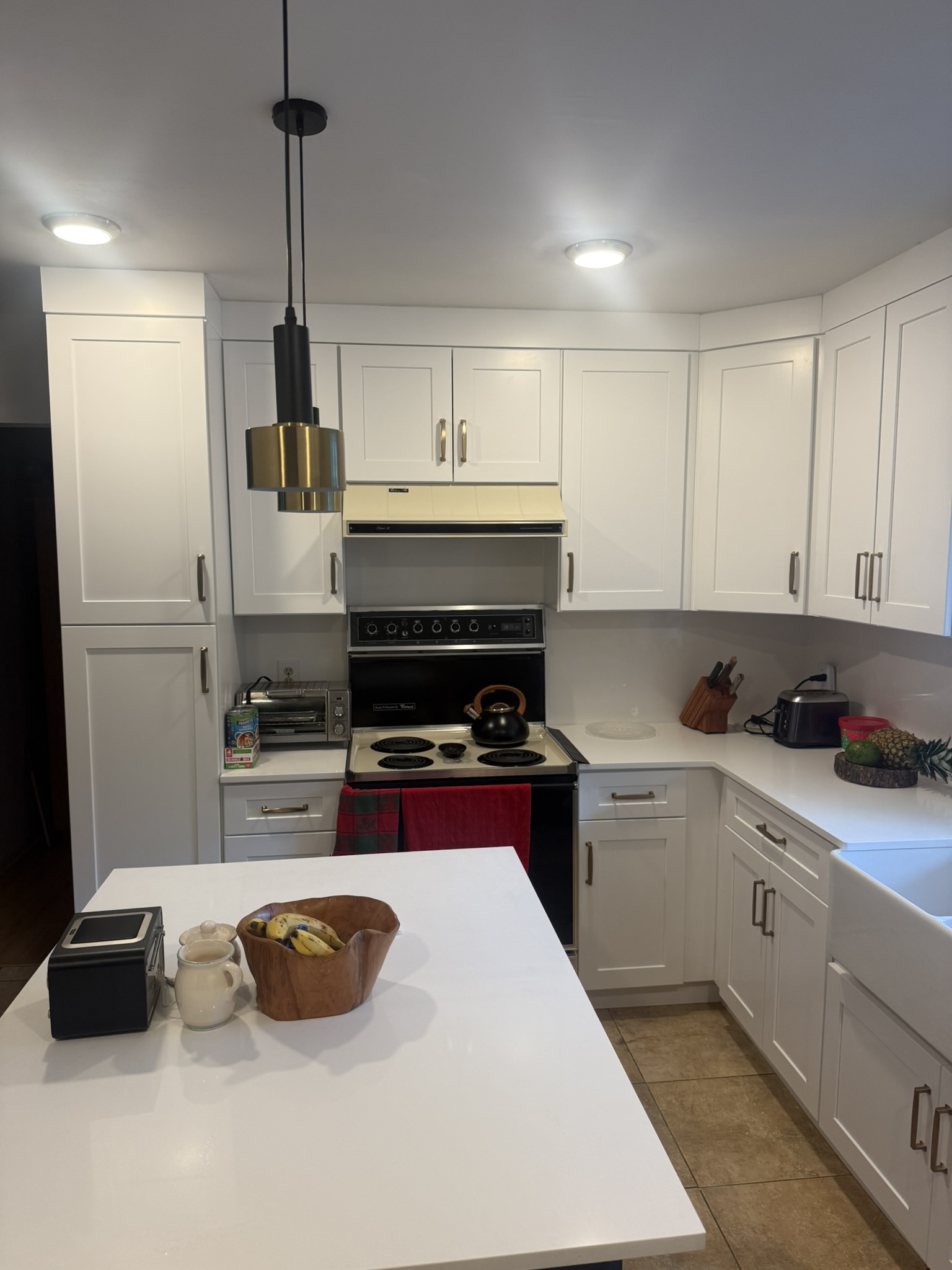 - Color: White for cabinets and Navy SuperMatte for Island and coffee station